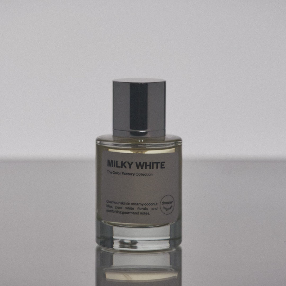 Milky White then unfolds with notes of hazelnut, milky accord, and white flowers to coat the skin in a creamy gourmand and elegant floral heart. The fragrance later evolves to reveal base notes of vanilla, white woods, tonka bean, benzoin res, and white musks––slathering the skin with lingering rich vanilla, powdery, woody, and warm aroma.